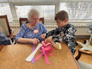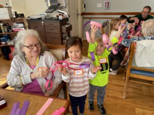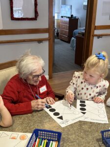 This winter, our 4s preschool classes have been taking turns visiting Resthaven on Monday mornings. During these special visits, students spend time with the “grandmas” and “grandpas,” building meaningful connections and community. Together, they sing songs, create crafts, and proudly share their growing skills—like counting and naming colors. When asked why they enjoy going to Resthaven, one preschooler simply said, “They don’t get many visitors, and they love people coming here!”